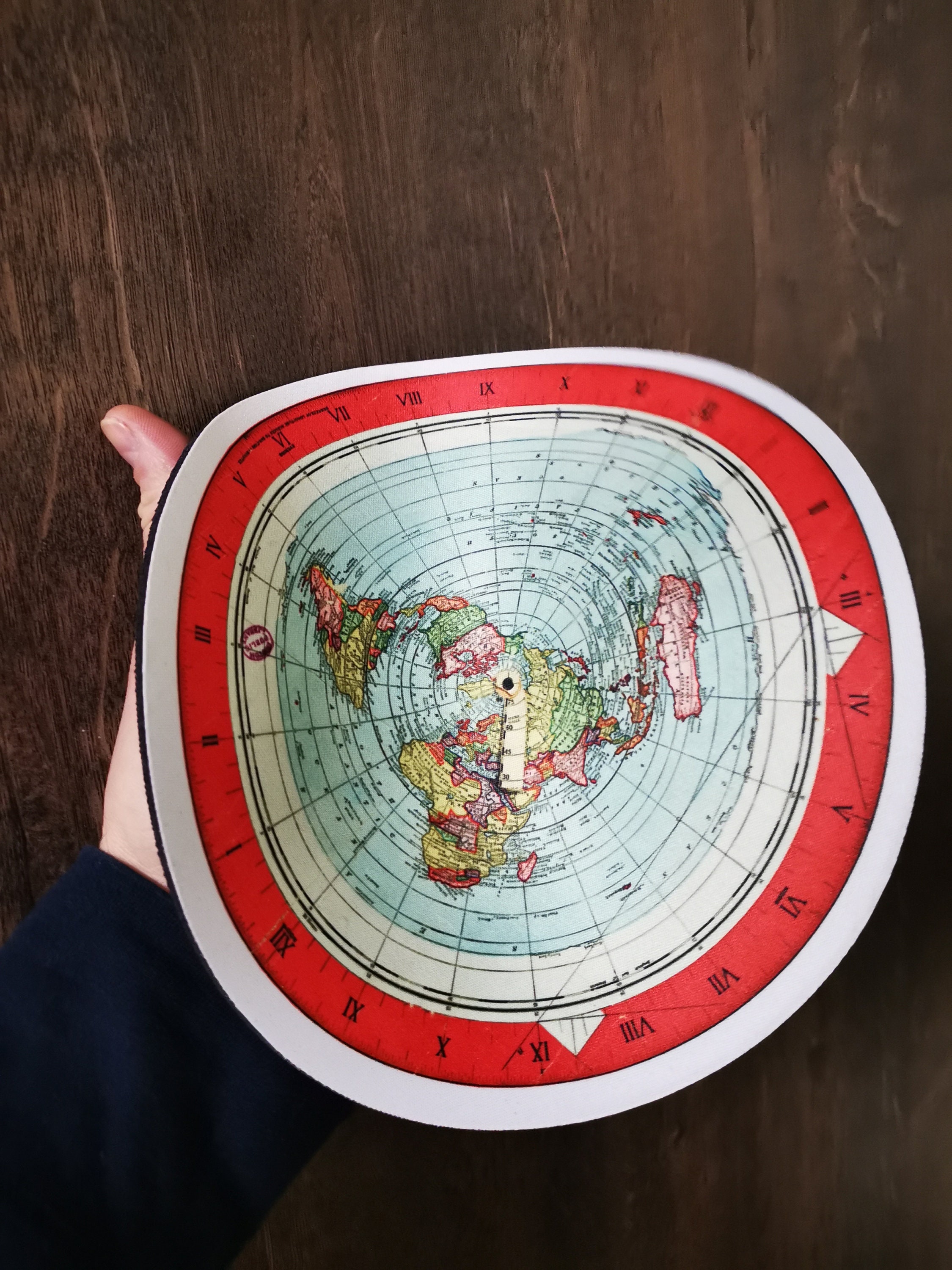 Flat Earth Map. If Earth was constantly spinning, aeroplanes would never be. The map contains several references to biblical passages as well as various jabs at the "Globe Theory".