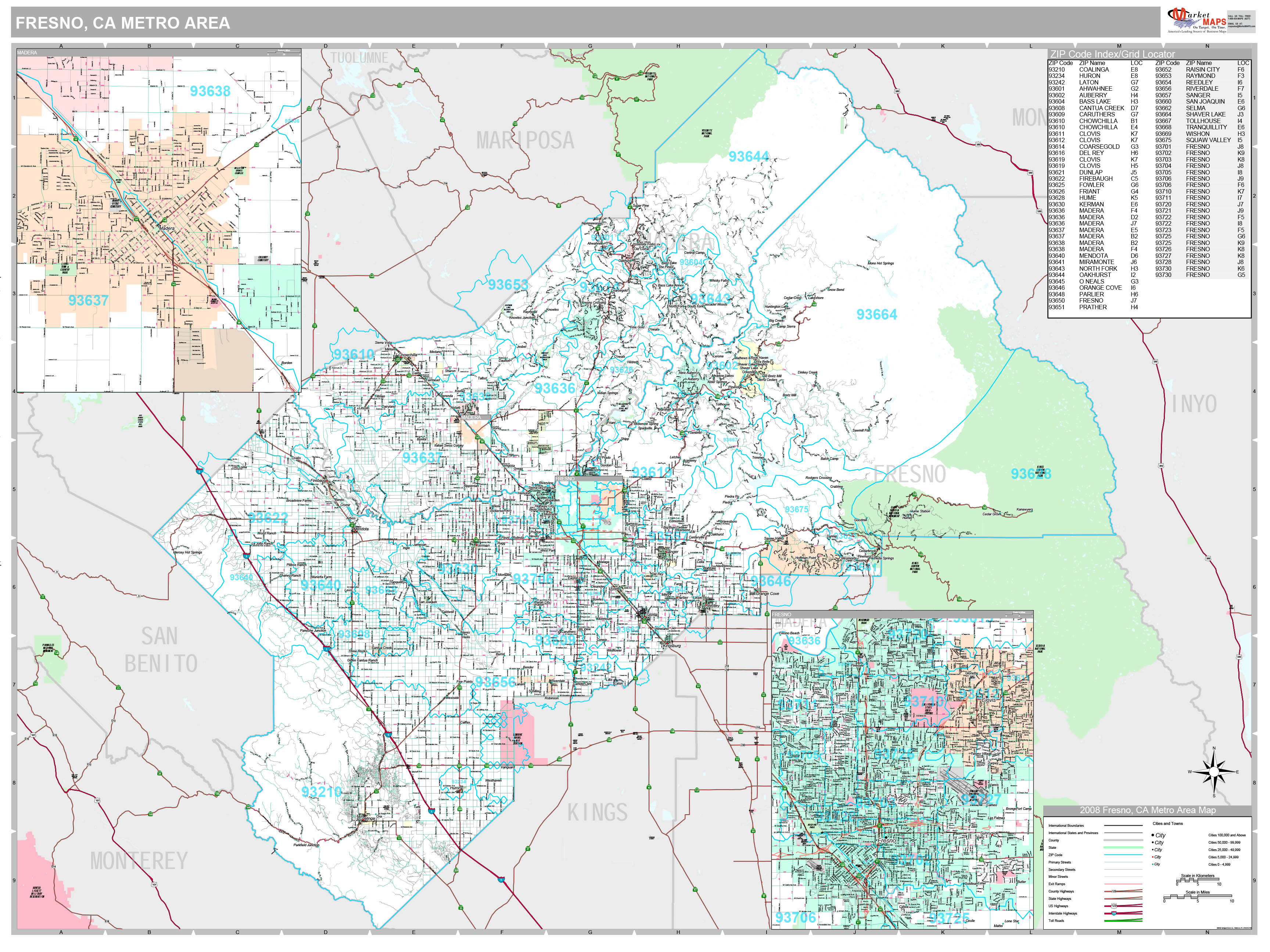 Fresno, CA Metro Area Wall Map Premium Style by MarketMAPS - MapSales.com