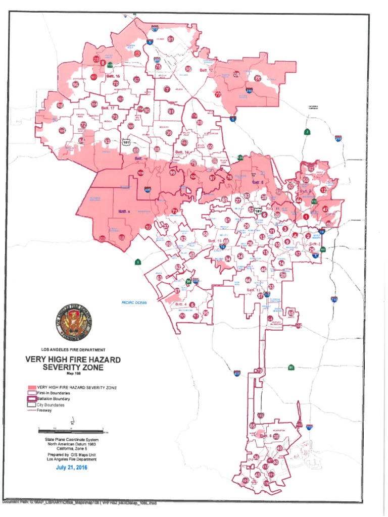 Los Angeles Fire Department's Very High Fire Hazard Serverity Zone map